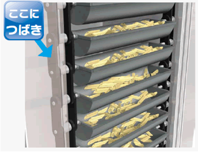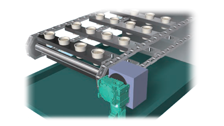 Para automatizar la sección de desmoldeo y reducir la mano de obra, fue necesario colocar la unidad de accionamiento encima del producto. Se adoptó CLEANVEYOR para minimizar el riesgo de contaminación por objetos extraños.
