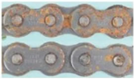 Nota: corrosión por picaduras por picaduras es un tipo de corrosión que se produce localmente en las superficies metálicas, donde las picaduras avanzan hacia el interior. Si corrosión por picaduras se produce en la superficie del pasador, puede ocurrir una fractura por fatiga en poco tiempo, lo que podría provocar la rotura de la cadena.