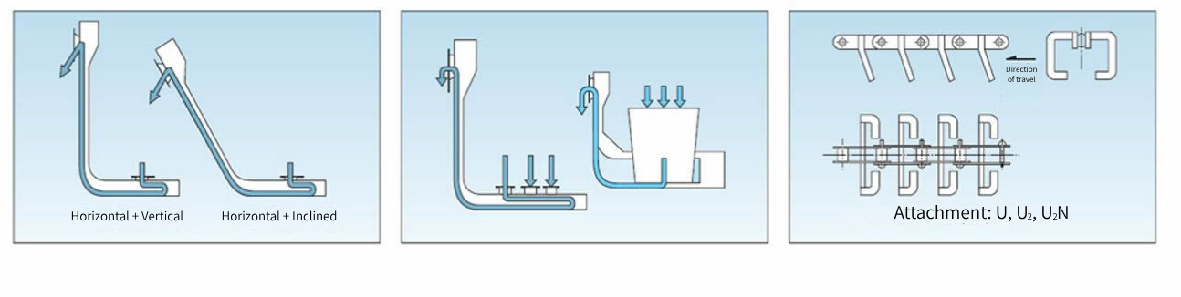 Ofrecemos una gama de especificaciones para abordar la flexión de la cadena causada por ceniza húmeda y seca, problemas con la rotación de los rodillos y la prevención de la corrosión y el desgaste.
