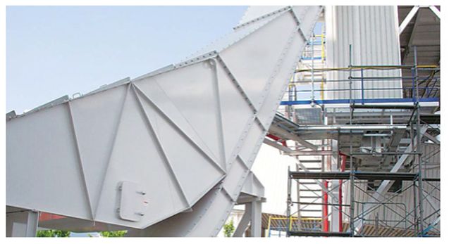 El sistema LC Flow es una cinta transportadora que utiliza su propia fricción para transportar polvos y materiales granulares desde una posición horizontal a una vertical, o desde una horizontal a una inclinada, todo en una sola unidad.