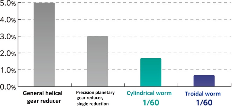 Debido al gran número de dientes que engranan simultáneamente, Troi Drive tiene el menor error de transmisión angular de cualquier reductor basado en engranajes.