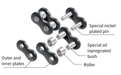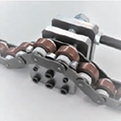 Se trata de una cadena tipo RS con pasadores extendidos y rodillo exterior de libre rotación.