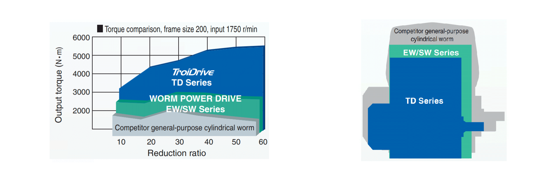 Se puede seleccionar un tamaño de marco hasta dos tamaños menor que el de un tornillo sin fin cilíndrico de uso general.