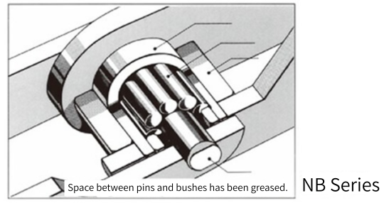 Es ideal para un transporte estable gracias a su bajo centro de gravedad y para un diseño de equipo compacto. Al igual que cadena Double Plus, se puede seleccionar el material del cuerpo de la cadena y rodillo exterior.