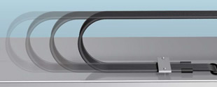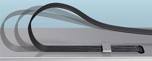 El elemento de soporte, que suprime el rebote y permite longitud de recorrido largo, está integrado en el tubo. El cable y el tubo tienen una estructura plana y soldada, lo que reduce la generación de polvo.