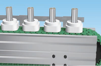 Una estructura única que combina rodillos de gran y pequeño diámetro permite un transporte a alta velocidad 2,5 veces superior a la velocidad de la cadena.