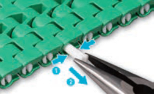Este sistema, con su forma de bloque y su ancho de enlace reducido, ofrece una amplia variedad de tamaños y especificaciones para adaptarse a los artículos que transporta y a las condiciones de funcionamiento.
