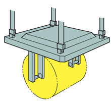 Para elevar y descender el rodillo durante el mantenimiento, puede utilizar Linipower Jack, Caja de cambios de inglete y el acoplamiento de disco.