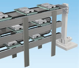 Ofrece un transporte rápido, silencioso y estable a una velocidad máxima de 220 m/min. Algunos modelos utilizan un sistema de alimentación sin contacto para reducir el riesgo de generación de polvo, lo que los hace aptos para su uso en salas blancas (equivalentes a la Clase 100). Se pueden fabricar soportes a medida para adaptarse a las características de los artículos transportados.
