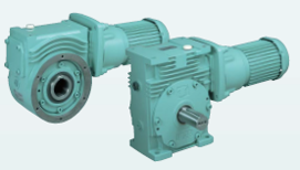 También es posible combinar un motorreductor con reductor de tornillo sin fin. Este motorreductor de alto rendimiento combina la gran resistencia de un tornillo sin fin con la alta eficiencia de un motorreductor. Esto permite un dispositivo más compacto y una reducción en el número de piezas.