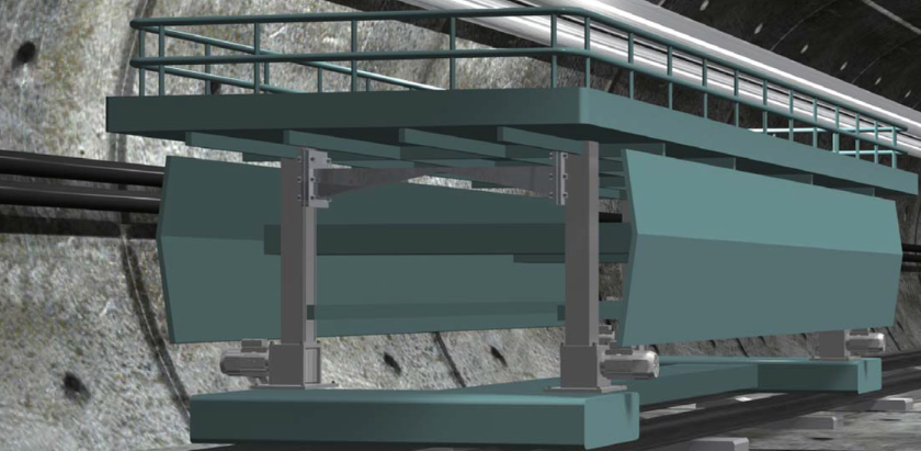Banco de trabajo para inspección de paredes de túneles
