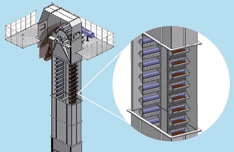 Elevador de cangilones/transportador de flujo/de vuelo