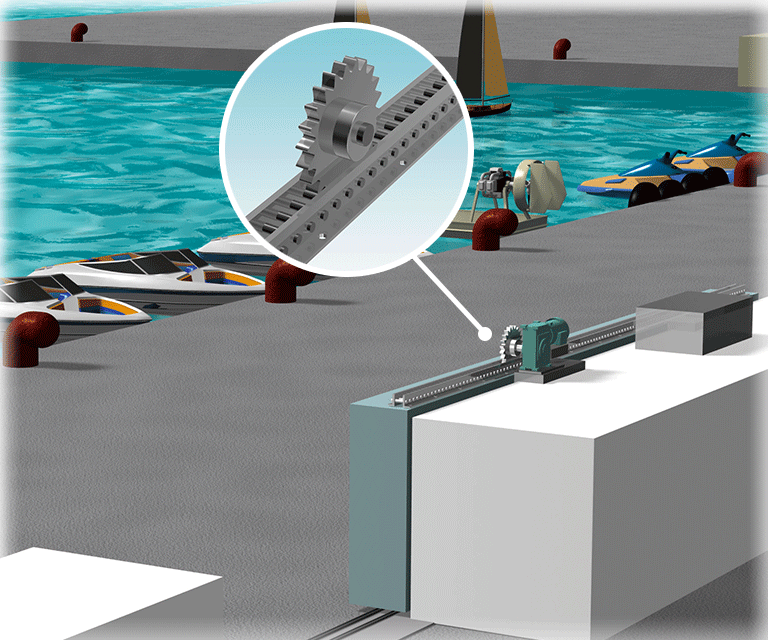 Para transmitir la potencia de las olas al generador, se utiliza Unidad de transmisión de engranajes de pasador R, capaz de transmitir un gran par. Además, dado que el entorno exige una alta resistencia a la corrosión, se utiliza una especificación altamente antioxidante.