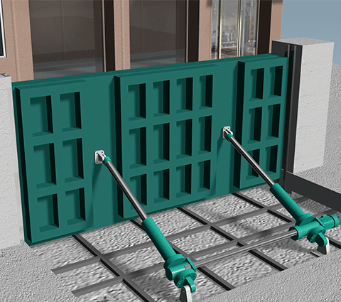 actuador de cadena Zip es discreto y compacto, por lo que puede instalarse en espacios estrechos sin necesidad de excavar un foso. Si el empuje requerido es insuficiente, se pueden conectar dos unidades para satisfacer la demanda. También puede instalarse en lugares con espacio limitado, como en el techo.