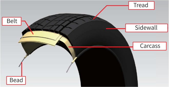 Este es el componente que entra en contacto con la superficie de la carretera y se procesa hasta obtener el espesor y la forma óptimos. - Cuerpo