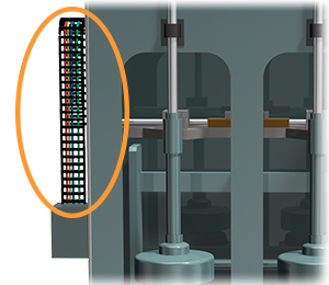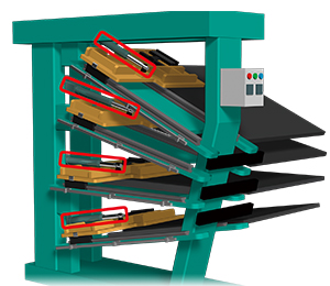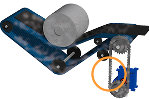 Dado que el transporte de láminas está expuesto a salpicaduras de agua y agentes desmoldantes, se acciona mediante una Cadena de transmisión resistente a la corrosión.