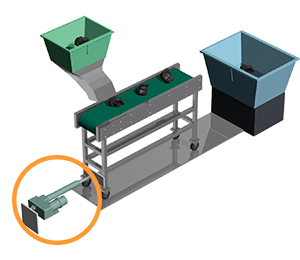 El alimentador de piezas utiliza cadena modular plástica y Cilindro de Potencia de Tsubaki.