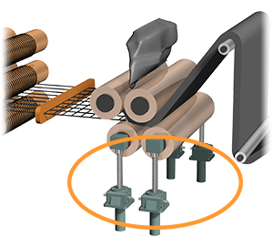 Se utiliza en combinación con un tornillo trapezoidal para ajustar la holgura entre rodillos. Al minimizar las irregularidades de rotación, se mejora la precisión de posicionamiento de los rodillos.