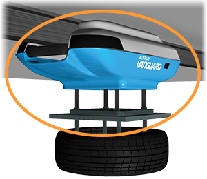También utiliza alimentación sin contacto, lo que mejora la fiabilidad. Se pueden transportar neumáticos de 13 a 20 pulgadas. Utiliza una pinza de menor diámetro que el neumático, lo que permite una disposición ordenada.