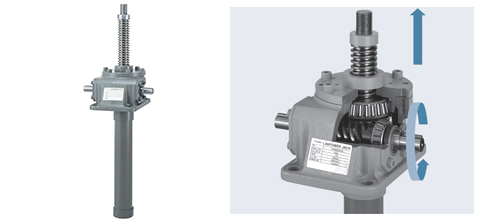 Este gato está formado por una combinación de un tornillo trapezoidal o de bolas y un engranaje sin fin.