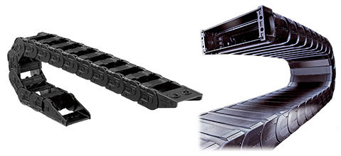 Portacables (CABLEVEYOR) de Tsubaki permiten que los cables eléctricos pasen a través del cuerpo, sujetando y guiando de manera confiable los cables entre el dispositivo móvil y el extremo fijo.