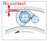 En ambos ejemplos de instalación 1 y 2, la leva no está en contacto con pista interior y pista exterior mientras la turbina está funcionando, logrando así una larga vida útil.