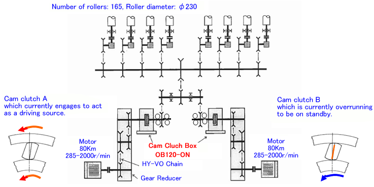 Por lo tanto, si hay un problema con la unidad de accionamiento, esto provocará la detención del equipo, por lo que, como se muestra arriba, se instalan dos unidades de accionamiento como sistema de reserva.