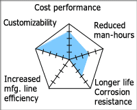 Para mejorar aún más la resistencia a la corrosión y la vida útil de los listones de la cadena original, propusimos cambiar el material de los listones y modificar las especificaciones de la cadena base.