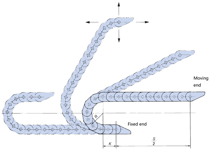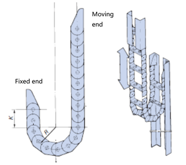 | Características | -Este es un método de instalación en el que la unidad se utiliza en posición vertical. - La masa del cable/manguera se concentra en el vértice del radio de curvatura, por lo que no es adecuado para longitud de recorrido largo. |