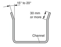 La abertura en la parte superior del riel debe estar inclinada hacia afuera para permitir que el Portacables (CABLEVEYOR) entre suavemente. El ángulo de curvatura debe ser de entre 15 y 20 grados, y la longitud debe ser de 30 mm o más.