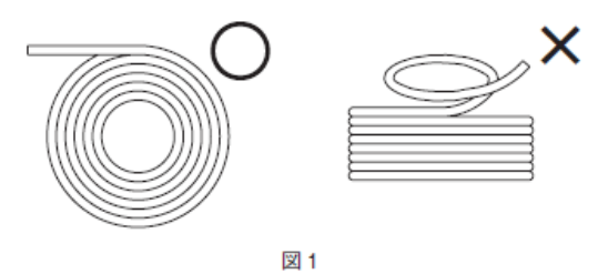 ■ Pase los cables y mangueras sin retorcerlos. No los extraiga en espiral del tambor o bobina, ya que esto provocará que queden retorcidos. (Véase la figura 1)