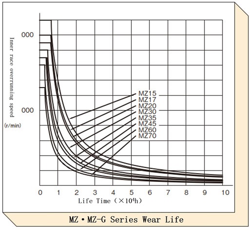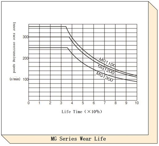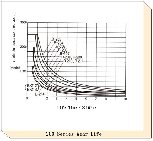 Aunque varía según las condiciones de lubricación, la curva de vida útil muestra la vida útil con lubricación en condiciones normales (como se indica en el catálogo). Para aplicaciones de alta velocidad y ralentí prolongado, consulte este gráfico para verificar la vida útil esperada.
