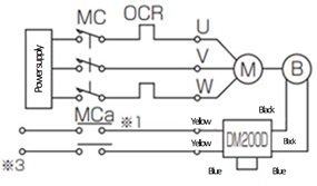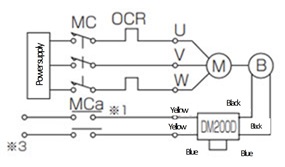 - Nota 1) El voltaje del freno es CC 90 V (cuando se ingresa CA 200 V a DM200D y PM180B).