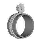 En lugar de una rueda dentada, se enrolla una cadena con un accesorio alrededor de la periferia exterior del tambor para formar una rueda, y se utiliza una rueda dentada especialmente procesada para el piñón.
