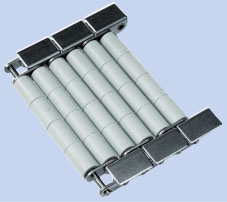 - Se fijan rodillo plástico a la línea de paso de la cadena, por lo que la separación entre rodillo plástico no cambia incluso cuando la cadena se dobla.