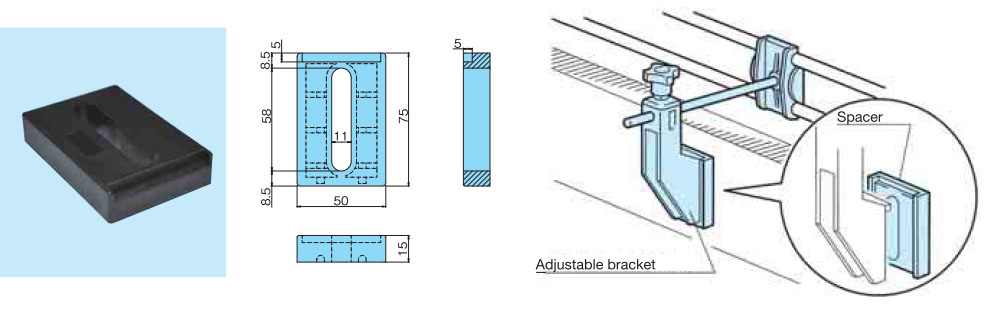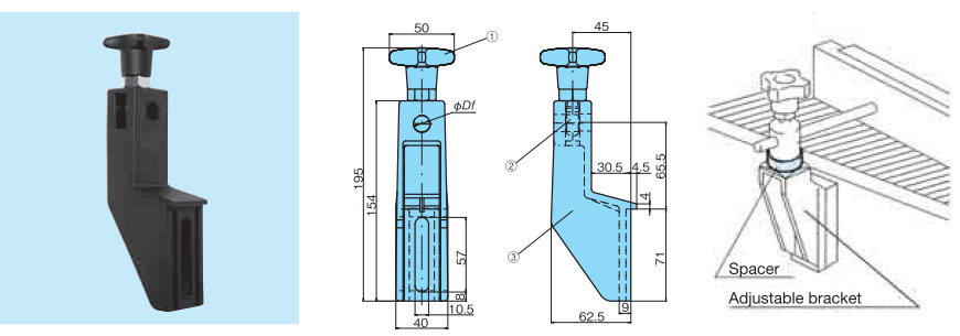 El lado fijo tiene rosca hembra. Úselo junto con canal guía y el soporte ajustable.