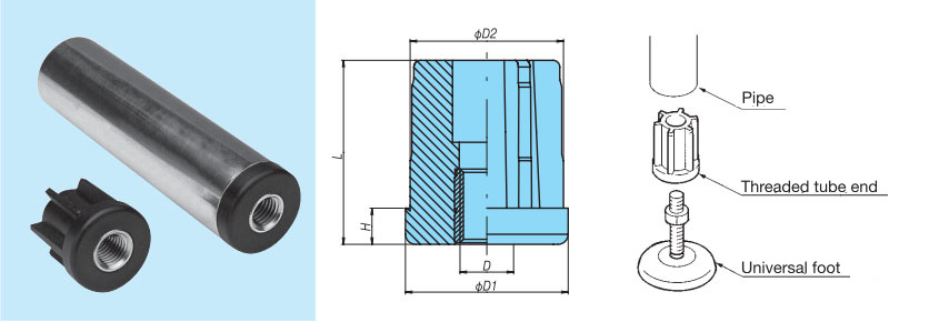 Insertándolo en un tubo y combinándolo con un pie universal, se puede utilizar como pata para un bastidor transportador.