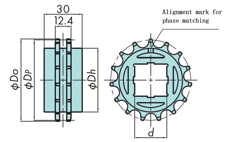 | Número de modelo | Número de dientes | Diámetro del círculo primitivo Dp mm | Diámetro exterior Do mm | Orificio del eje forma |