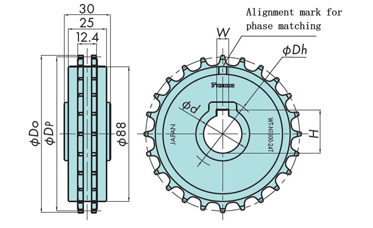 | Número de modelo | Número de dientes | Diámetro del círculo primitivo Dp mm | Diámetro exterior Do mm | Orificio del eje forma |