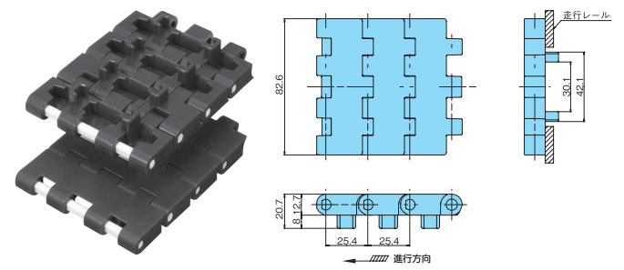 プラスチックモジュラーチェーンBTC8H-M形 主要諸元