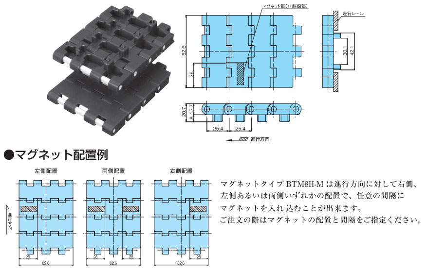 • - La línea incluye el tipo cerrado BTC8H-M, que es adecuado para el transporte en superficies planas, y el tipo magnético BTM8H-M, que es adecuado para el transporte en superficies inclinadas.