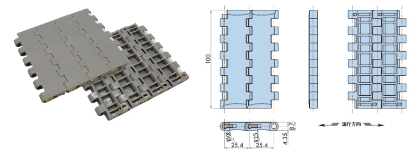 プラスチックモジュラーチェーンWT2525-M形 主要諸元