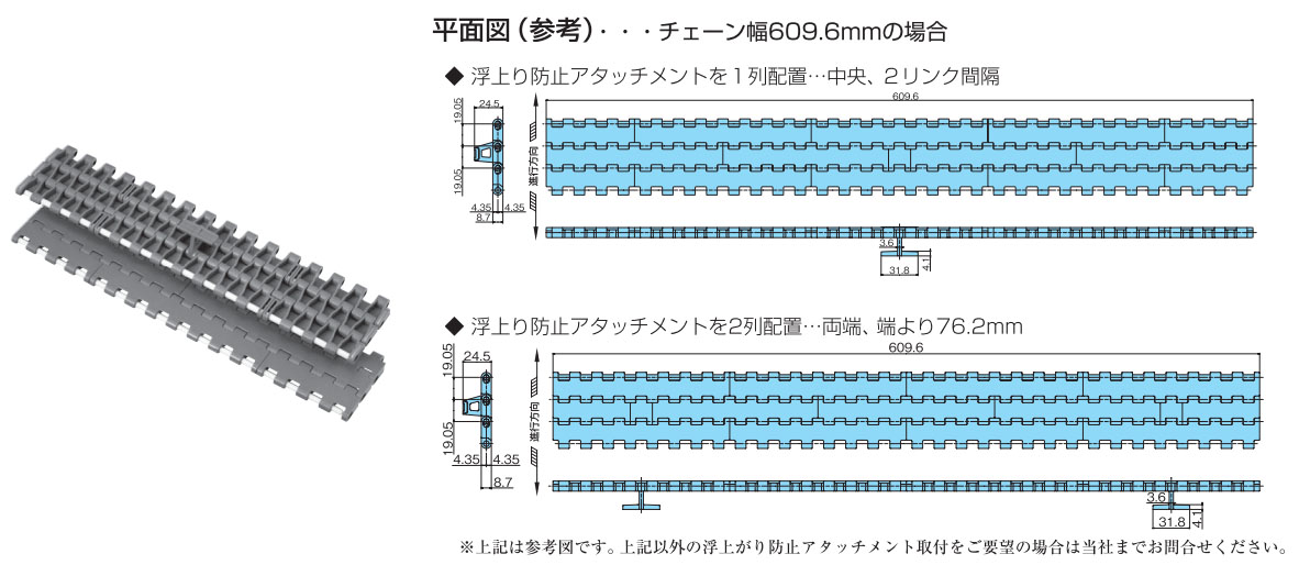 • ・BTC6形に浮上り防止アタッチメントがついたタイプです。フレームからのチェーンの浮上りを防止します。