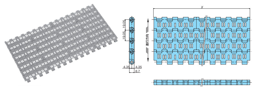プラスチックモジュラーチェーンBTO6RN形 主要諸元