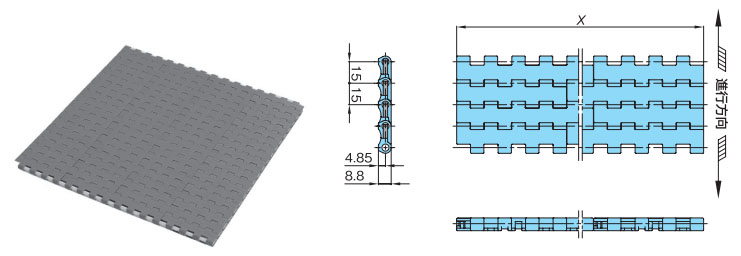 プラスチックモジュラーチェーンWT1505RN-K形 主要諸元