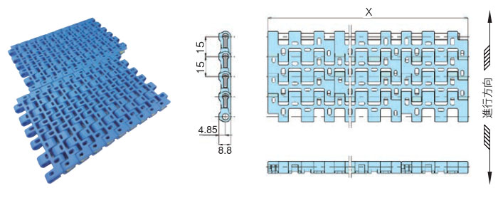 プラスチックモジュラーチェーンWT1516-W形 主要諸元