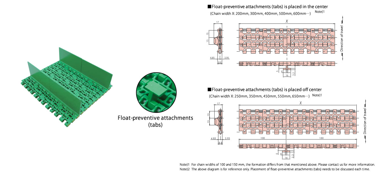 プラスチックモジュラーチェーンWT1516T-F-W形 主要諸元