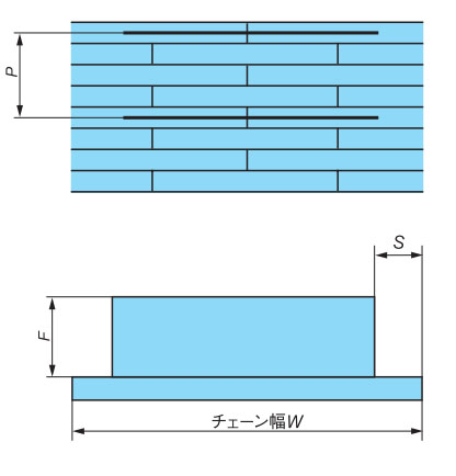・フライトの取付け間隔P (チェーンピッチ25.4mmの整数倍で取付け可能です)