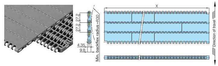 • ・幅広と幅狭のプラスチック製モジュールをレンガ状に組合せ、ワイドな搬送面を実現し大量搬送が可能です。