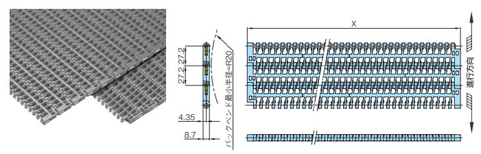 プラスチックモジュラーチェーンWT2706-K形 主要諸元